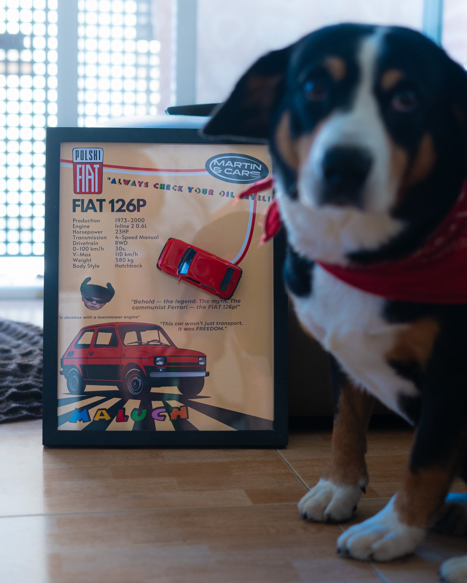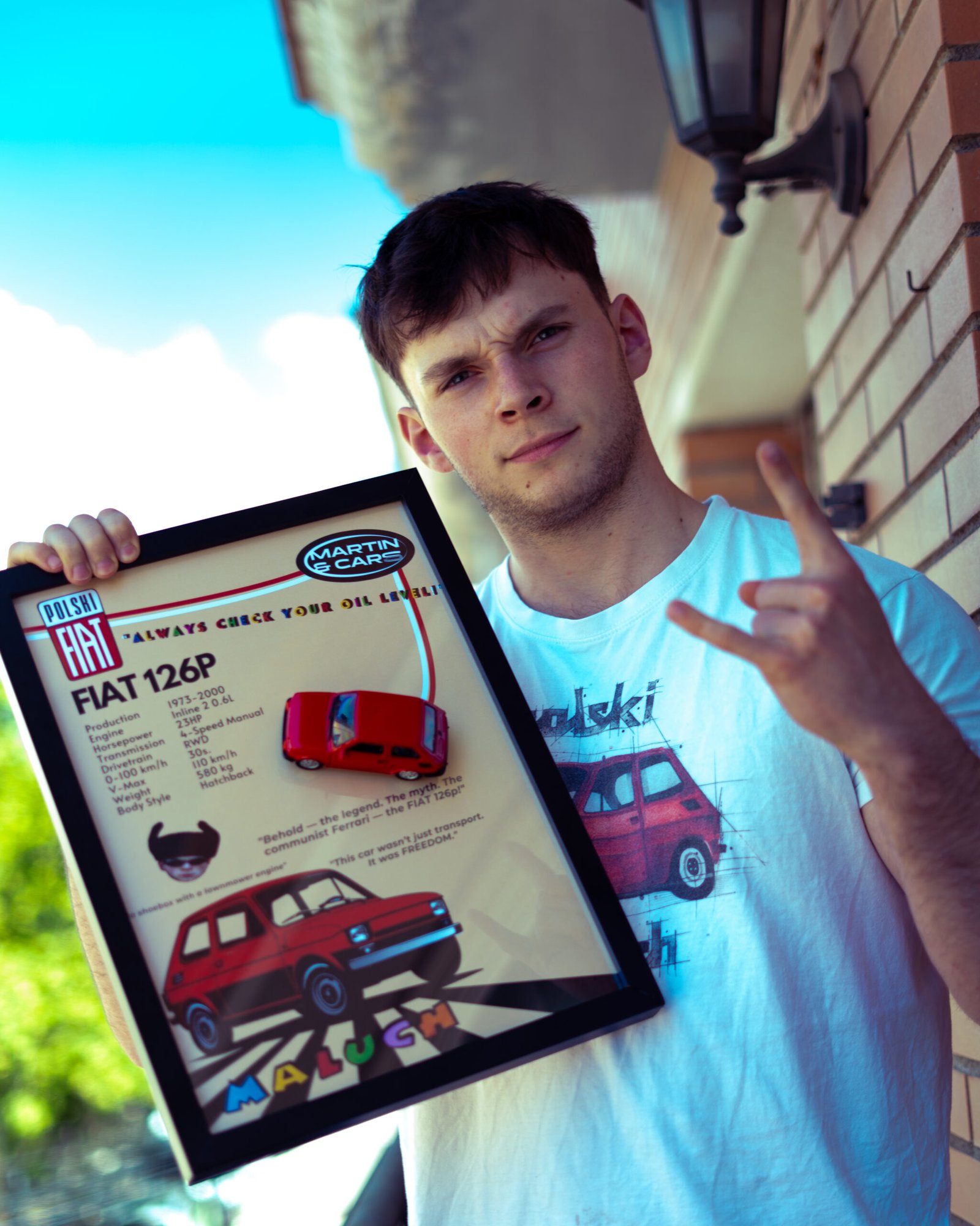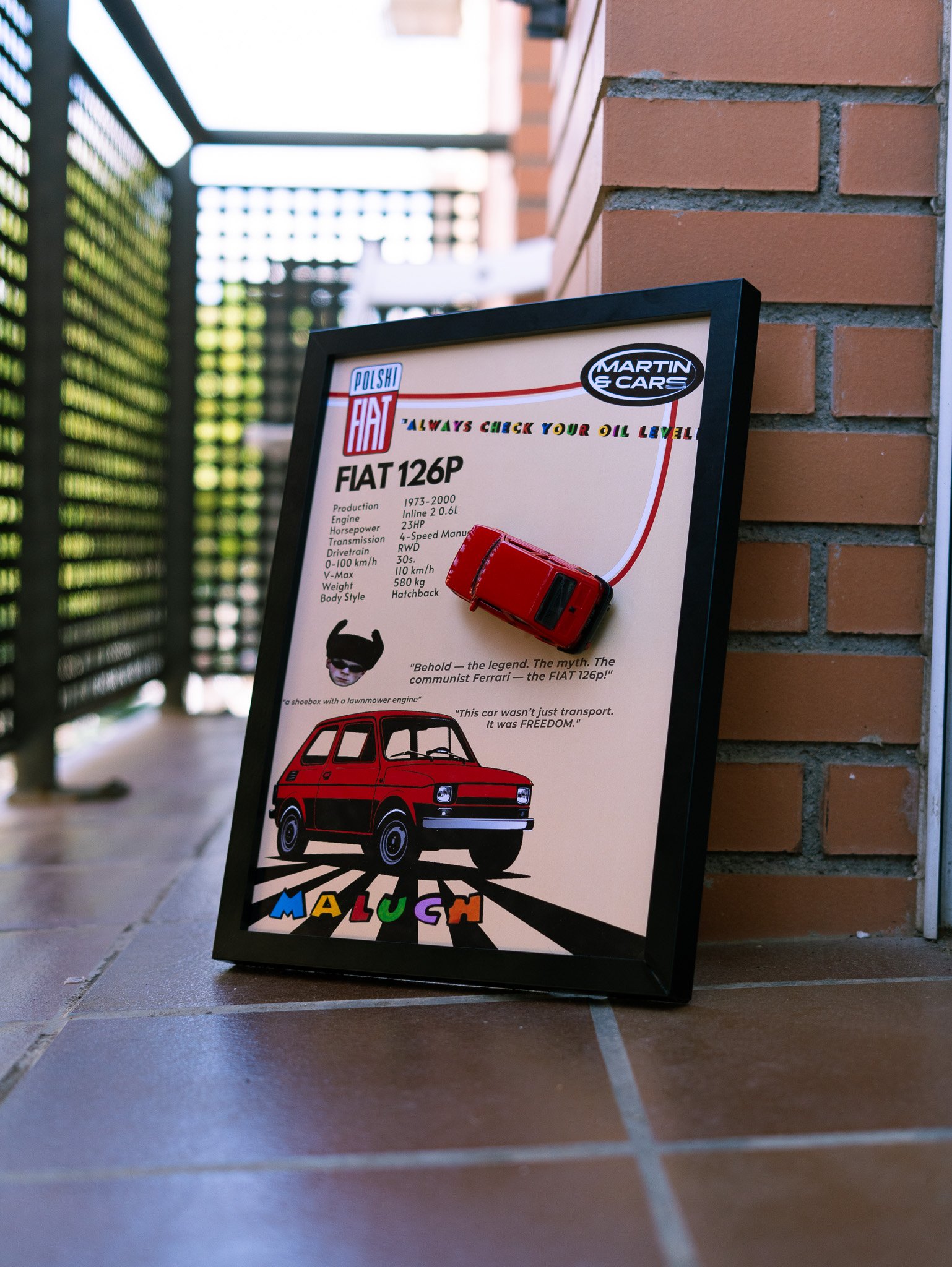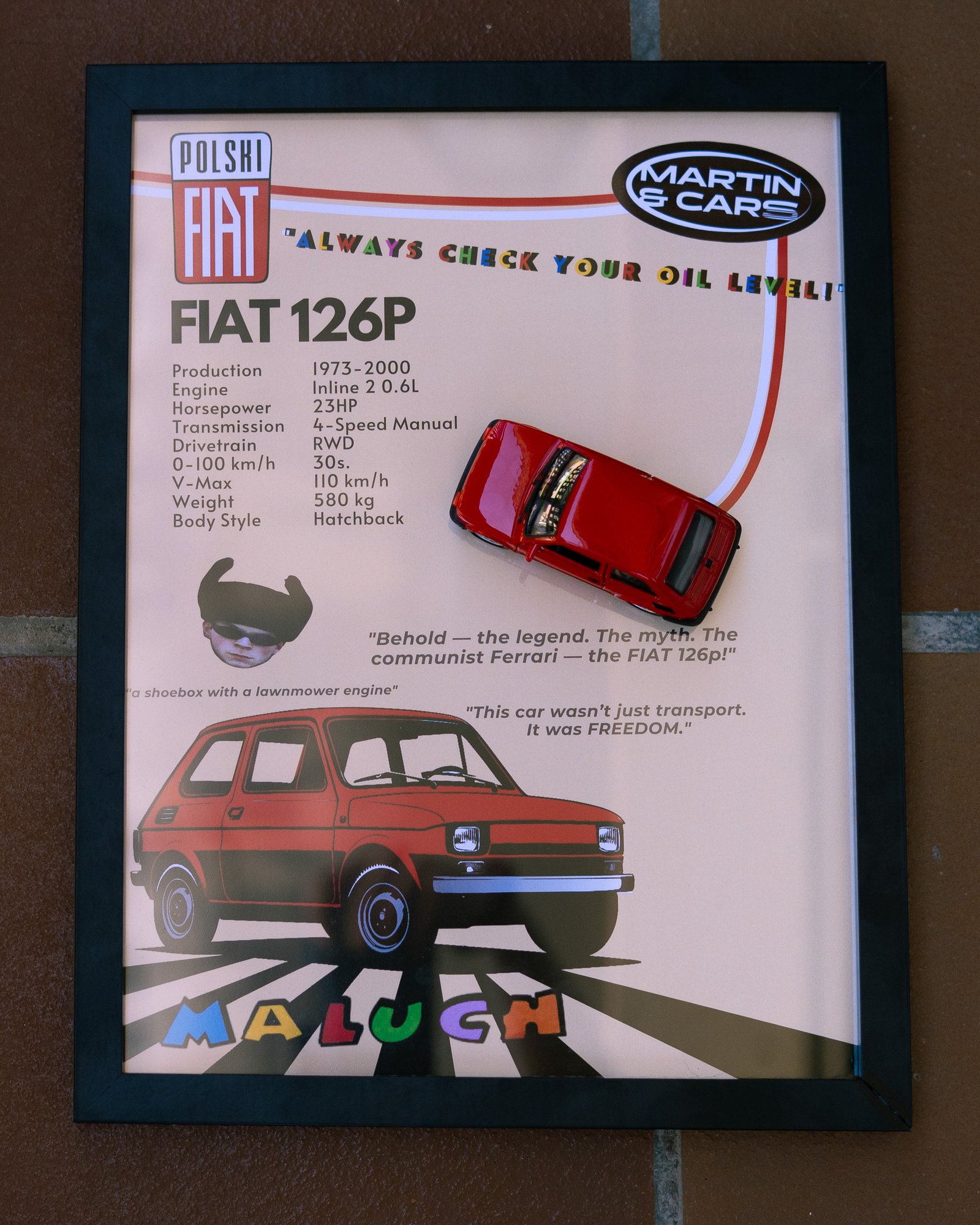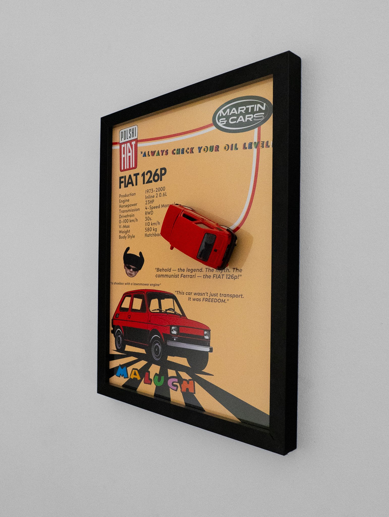 A Fiat 126 scale model comes together with the poster and can be attached by a magnet.